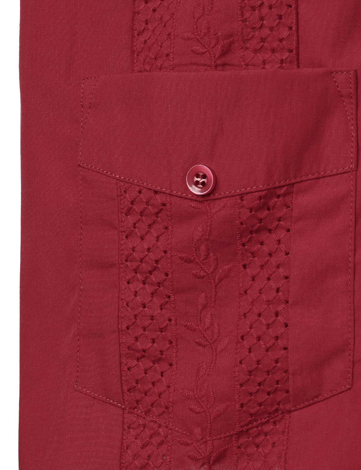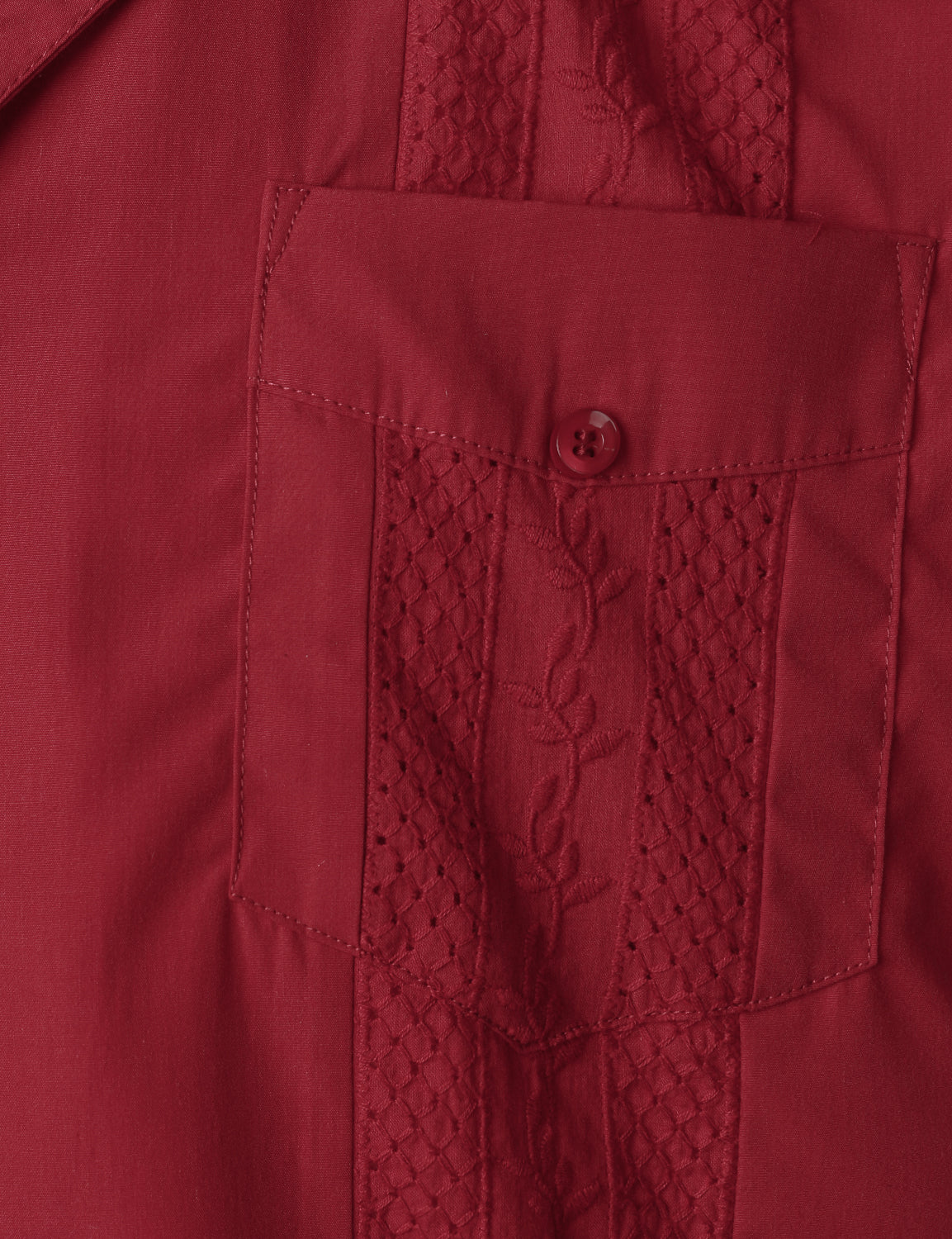 Men's Red Short Sleeve Pocket Cuban Guayabera Shirt