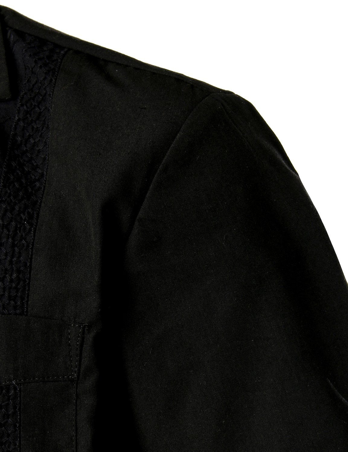 Men's Solid Color Stand Collar Half Button Pocket Front Shirt