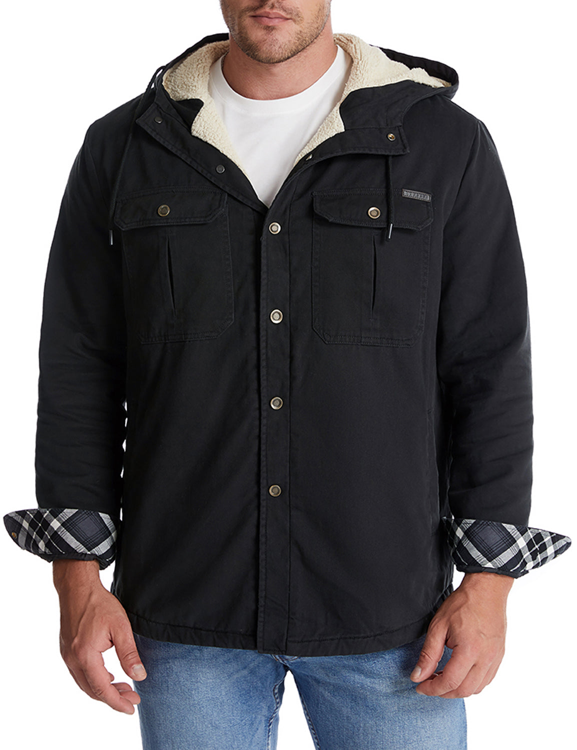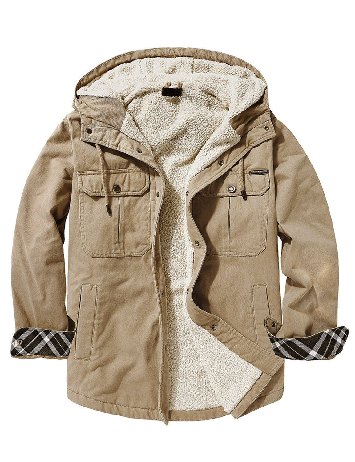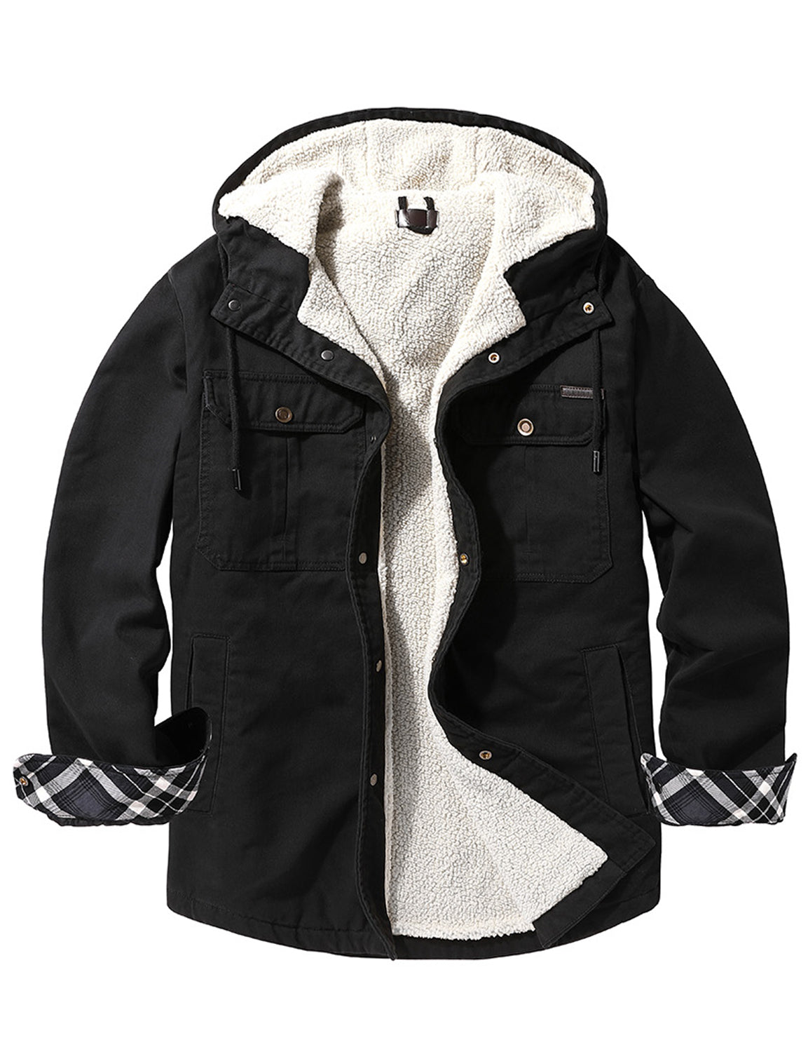 Men's Casual Flannel Lined Long Sleeve Fall Winter Warm Plaid Hooded Shirt Jacket