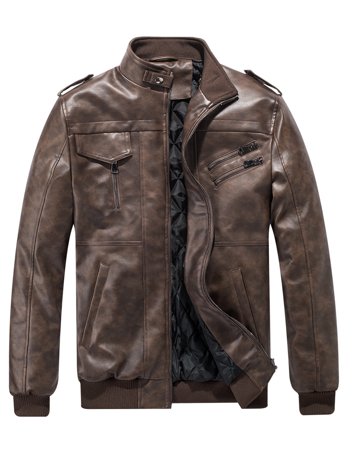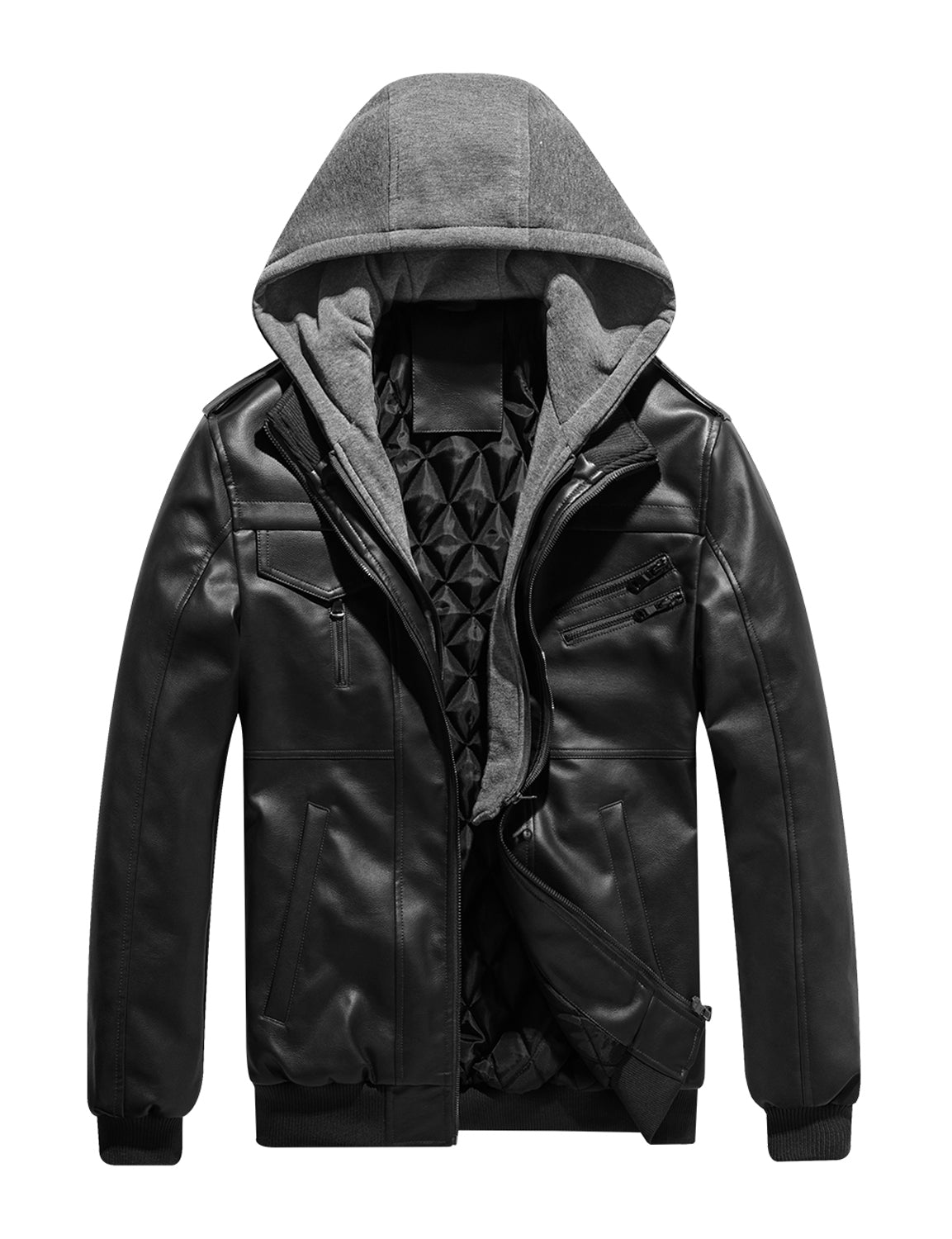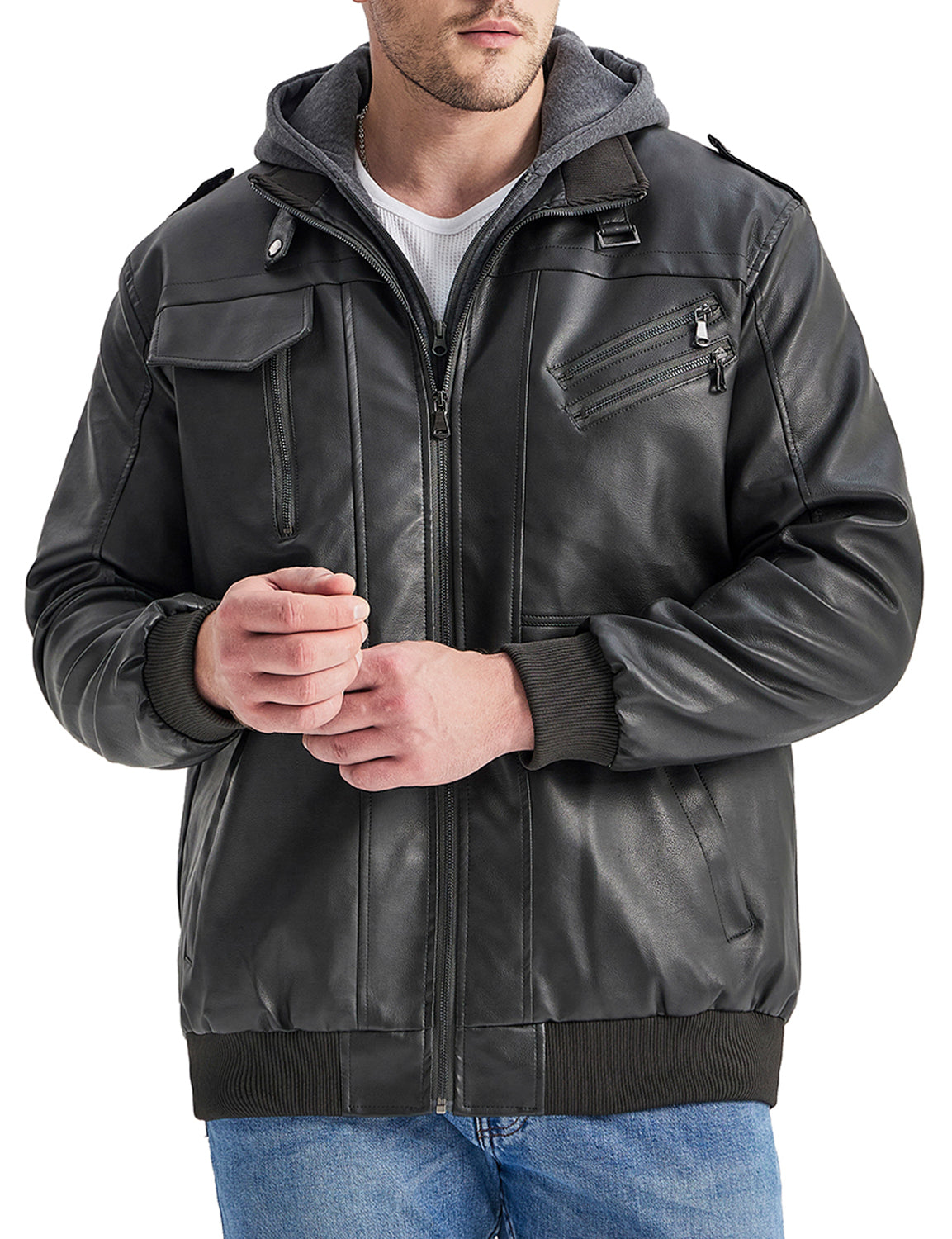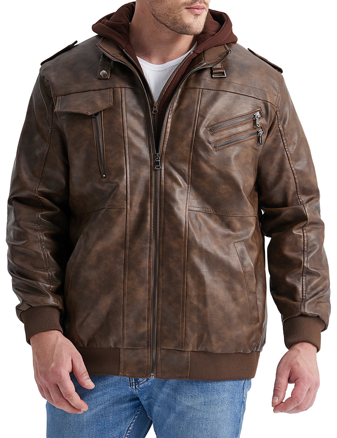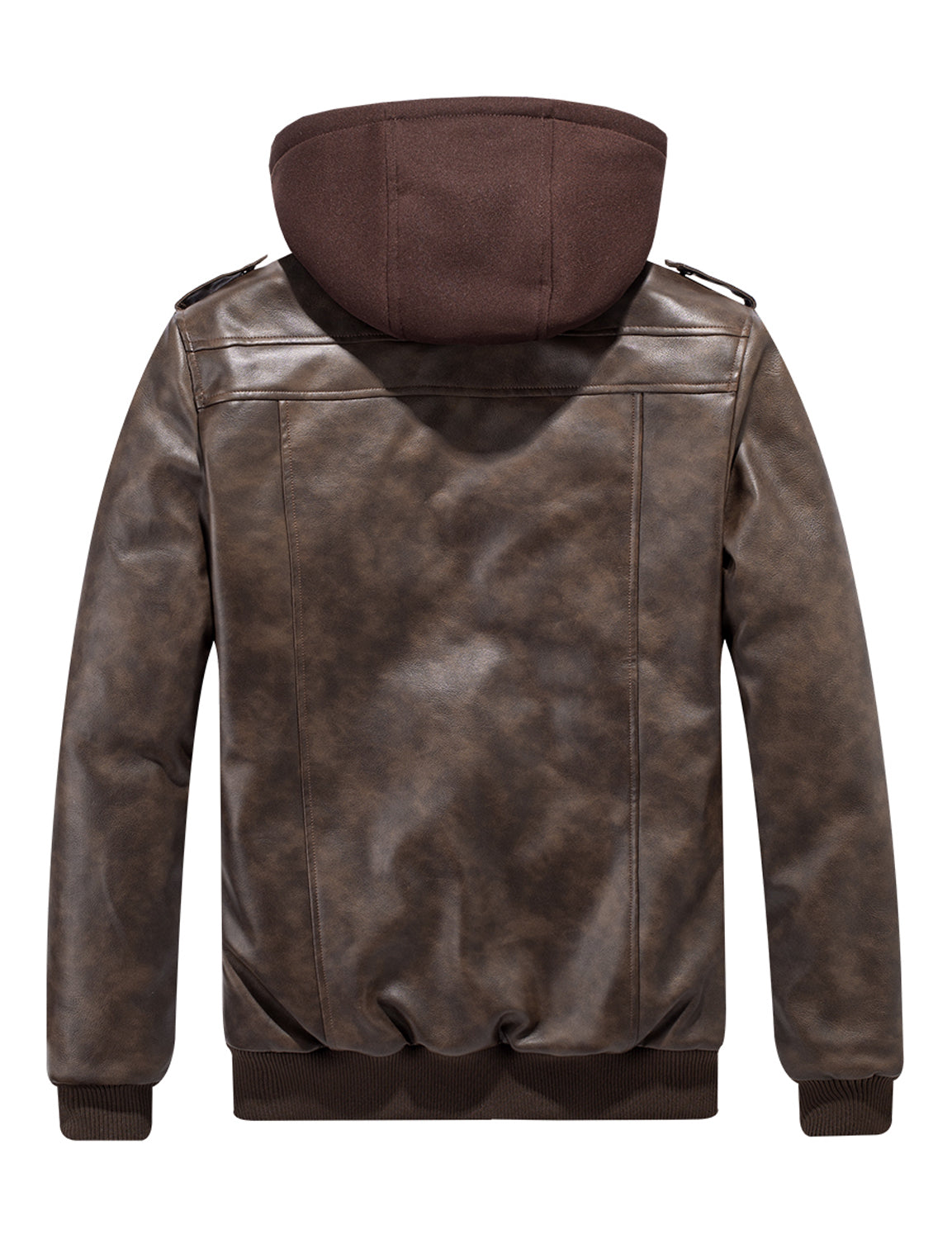 Men's Vintage Motorbike Biker Winter Leather Bomber Motorcycle Jacket with Removable Hood